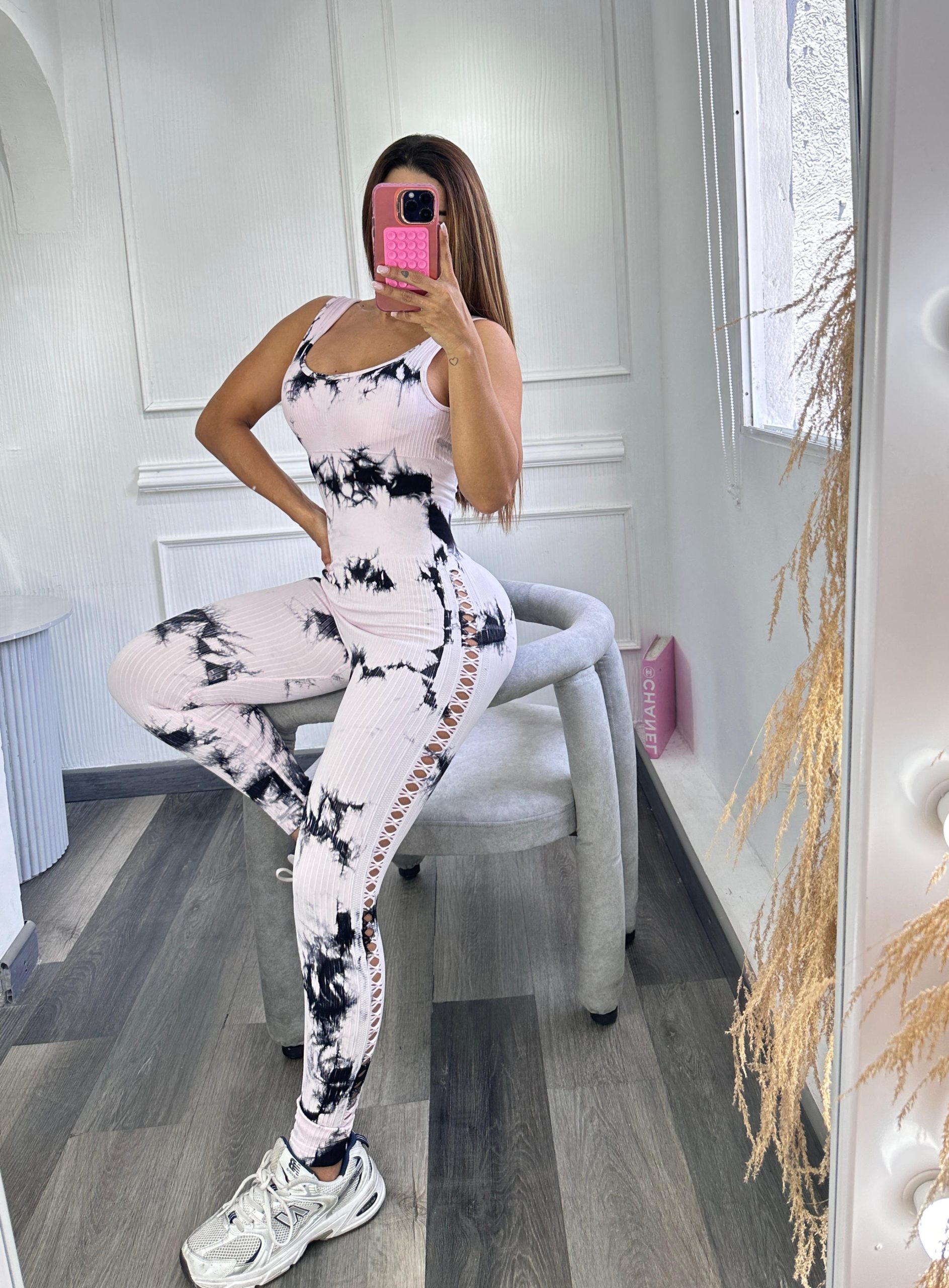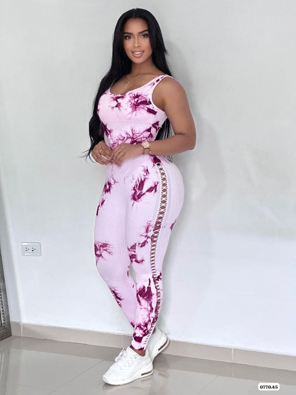 Enterizo Deportivo Tie-Dye con Detalles de Encaje Americano – Estilo, Comodidad y Tendencia